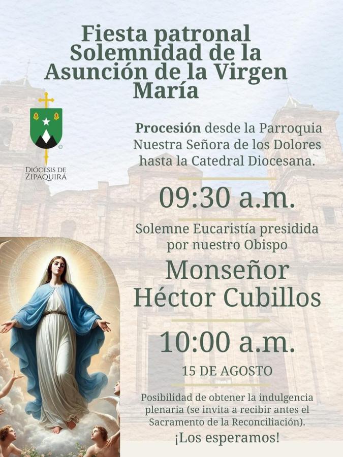 A todos los fieles les invitamos a participar en la celebración de la Fiesta patronal de nuestra Diócesis de Zipaquirá por la Solemnidad de la Asunción de la Virgen María.