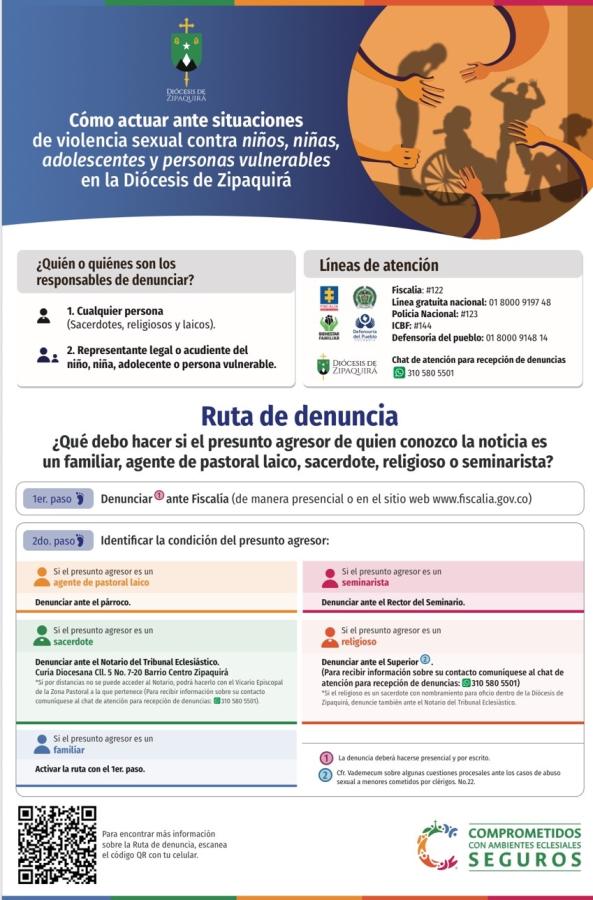 Establece lineamientos generales para la activación de la ruta de denuncia de violencia sexual contra NNA y personas vulnerables en ambientes eclesiales de la Diócesis de Zipaquirá